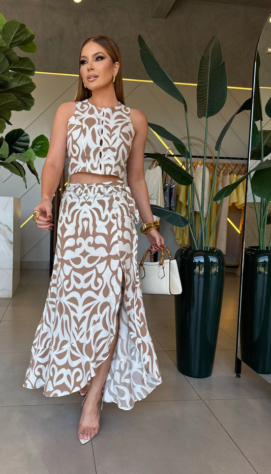 Conjunto saia midi estampada