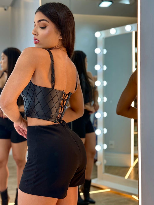 ✨ Conjunto Camisa Cropped + Calça Crepe Crispy Fio de Lurex