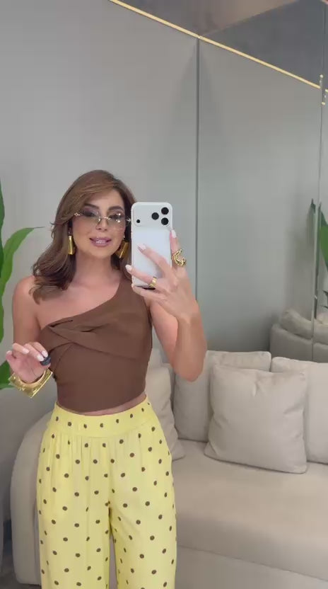 Conjunto Cropped Nula Manga Alfaiataria Marrant e Calça Viscose Slub