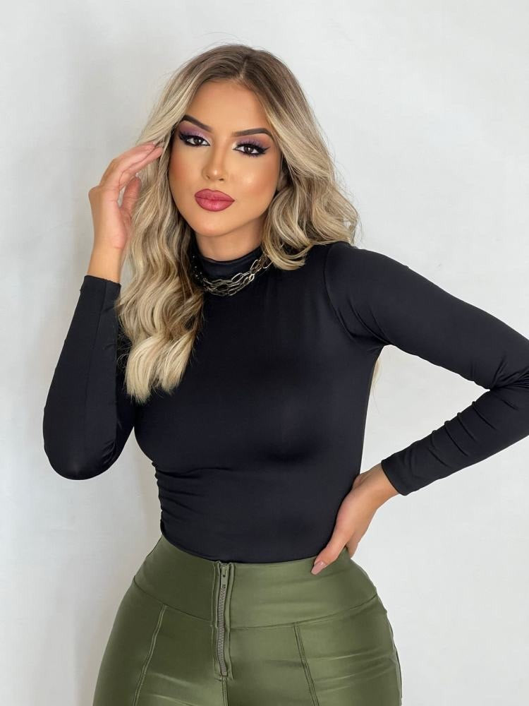 Body manga longa e gola alta